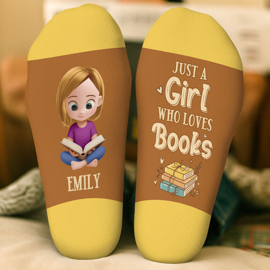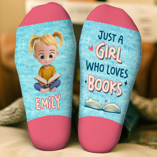Just A Girl Who Loves Books - Personalized Custom Socks