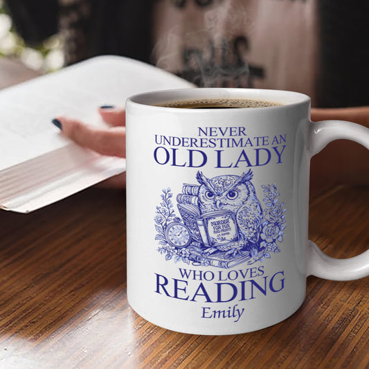 Never Underestimate An Old Lady Who Loves Reading - Personalized Ceramic Coffee Mug