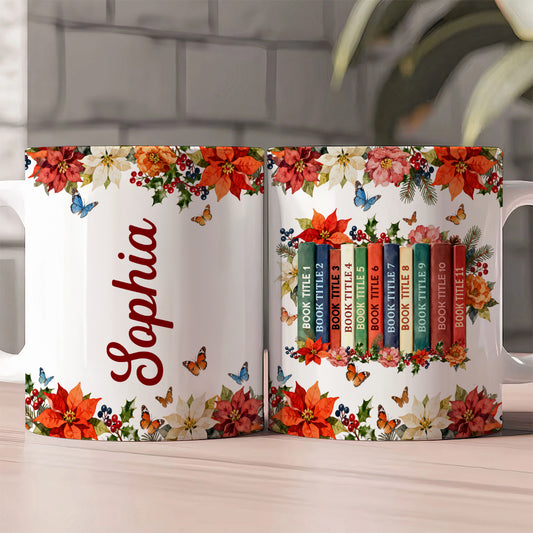 Birth Flower Book Lovers Christmas Edition - Personalized Ceramic Coffee Mug