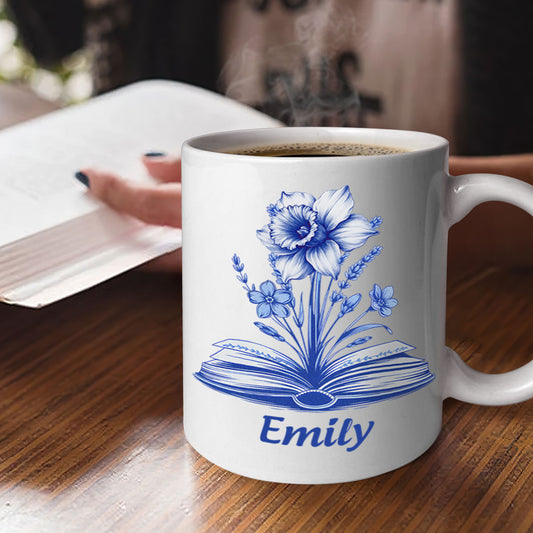 My Book & Birth Flower - Personalized Ceramic Coffee Mug