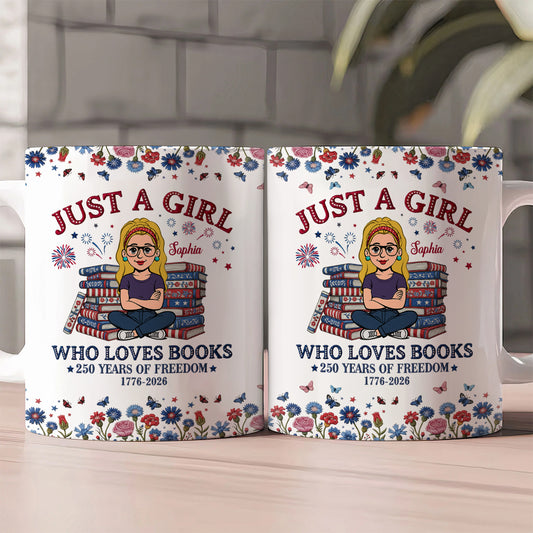 Just A Girl Who Loves Books American 250th - Personalized Ceramic Coffee Mug
