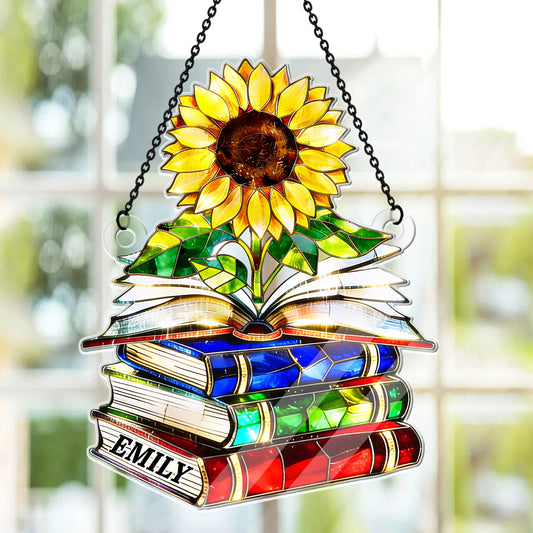 Vintage Sunflower Book Lover - Personalized Acrylic Suncatcher