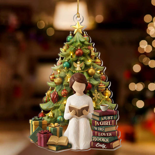 Just A Girl Who Loves Books Christmas Tree - Personalized 1-Layer Acrylic Ornament