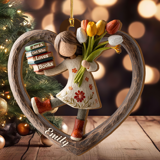 Just A Girl Who Loves Books Wooden Ver - Personalized Wood Ornament Cutout & Print 1 Side