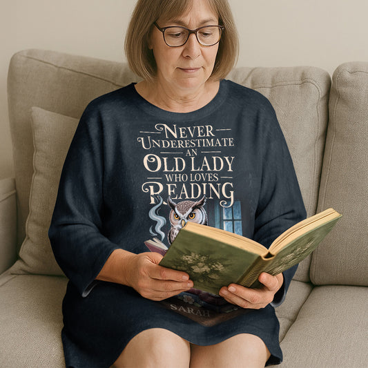 Never Underestimate An Old Lady Who Loves Reading - Personalized Sleep Tee