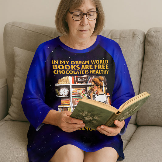 In My Dream World Books Are Free Chocolate Is Healthy And Reading Makes You Thin - Personalized Sleep Tee
