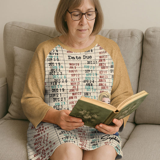 Nostalgic Library Card Due Date Stamp - Personalized Sleep Tee