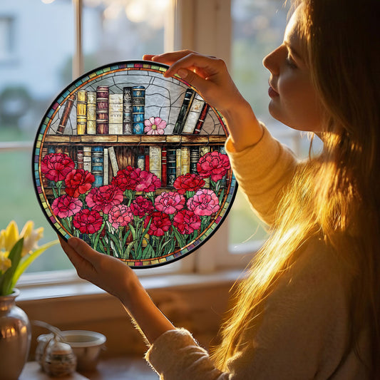 Floral Book Lovers - Personalized Stained Glass Window Hanging Suncatcher