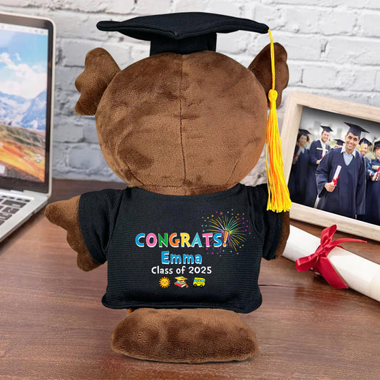 Cute Graduation Cap Design Stuffed Animal With Name and Year Graduation - Personalized Graduation Owl