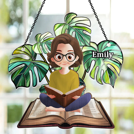 Monstera Leaves & Book Lovers - Personalized Window Hanging Suncatcher