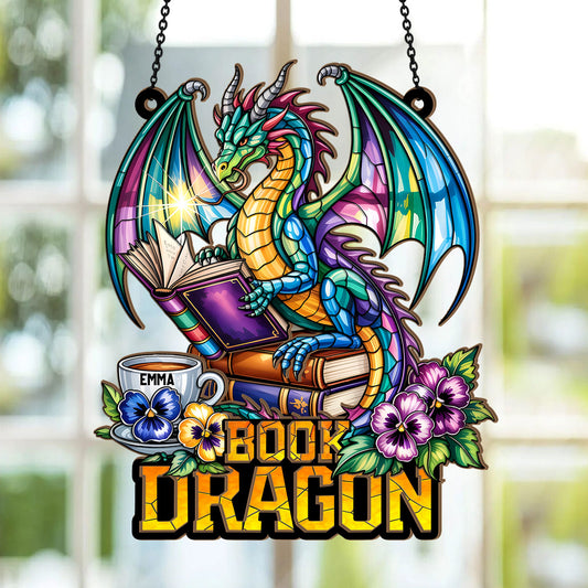 I Am A Book Dragon - Personalized Window Hanging Suncatcher