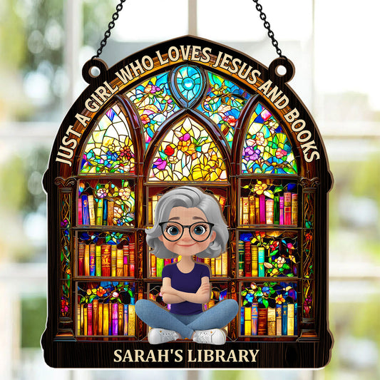 Just A Girl Who Loves Jesus And Books - Personalized Window Hanging Suncatcher