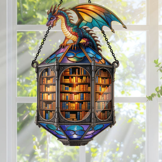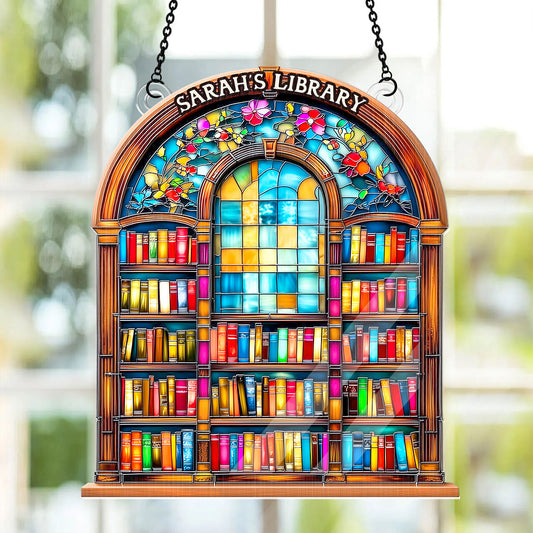 Stained Glass Effect Old Library - Personalized Window Hanging Suncatcher