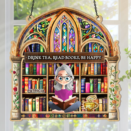 Drink Tea, Read Books, Be Happy - Personalized Window Hanging Suncatcher