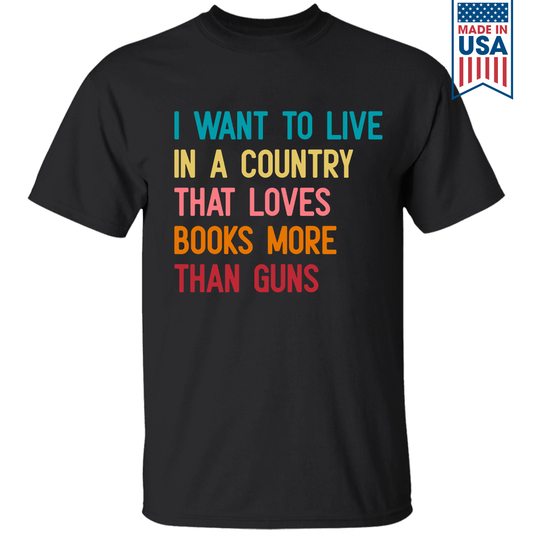 I Want To Live In A Country That Loves Books More Than Guns Book Lovers Gift TSB332