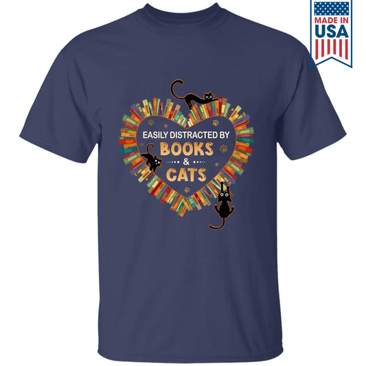 Easily Distracted By Books And Cats Book Lover Gift TSB214