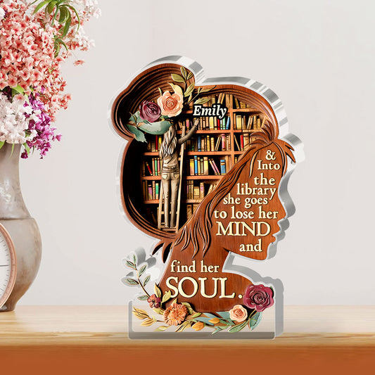 And Into the Library She Goes to Lose Her Mind and Find Her Soul - Personalized Custom Shaped Acrylic Plaque