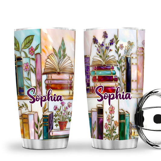 Stained-Glass Style Floral Bookshelf - Personalized Stainless Steel Tumbler