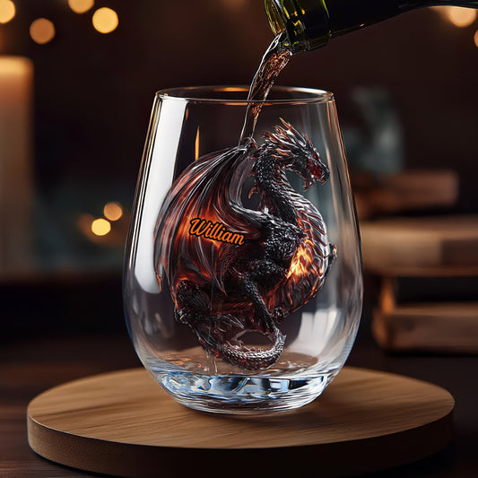 Fantasy Dragon - Personalized Stemless Wine Glass