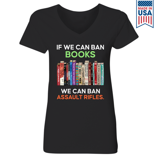 If We Can Ban Books We Can Ban Assault Rifles Book Lovers Gift Women's V-neck T-shirt TSVW227