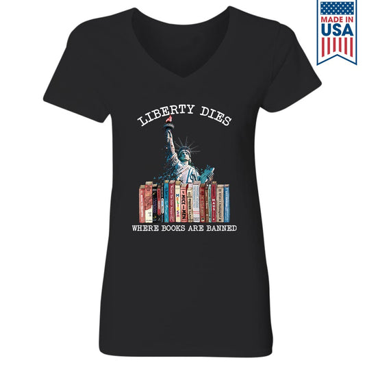Liberty Dies Where Books Are Banned Book Lovers Gift Women's V-neck T-shirt TSVB230