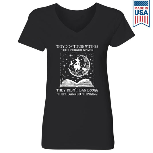 They Didn't Ban Books They Banned Thinking Book Lovers Gift Women's V-neck T-shirt TSVB278