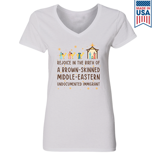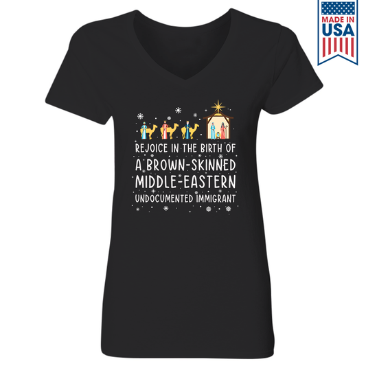 Rejoice In The Birth Of A Brown-Skinned Middle-Eastern Undocumented Immigrant Book Lovers Gift Women's V-neck T-shirt TSVW305
