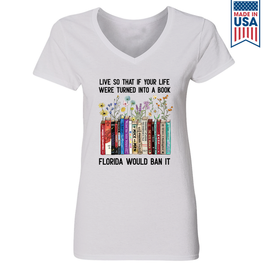 Live So That If Your Life Were Turned In To A Book Florida Would Ban It Book Lovers Gift Women's V-neck T-shirt TSVB220
