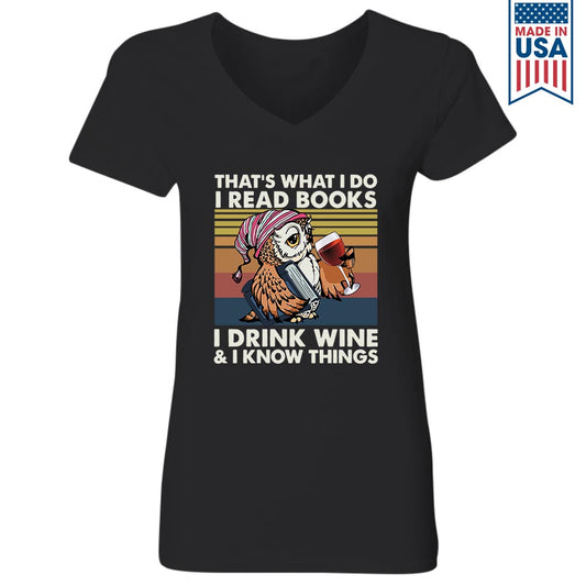 That's What I Do I Read Books I Drink Wine And I Know Things Book Lovers Gift Women's V-neck T-shirt TSVB14
