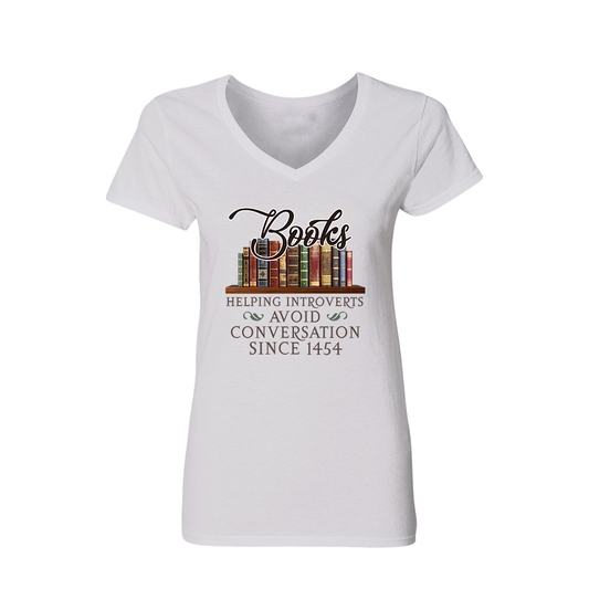 Helping Introverts Avoid Conversation Book Lovers Gift Women's V-neck T-shirt TSVW03