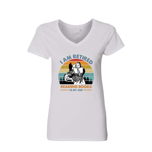 I Am Retired Reading Books Is My Job Book Lovers Gift Women's V-neck T-shirt TSVW01