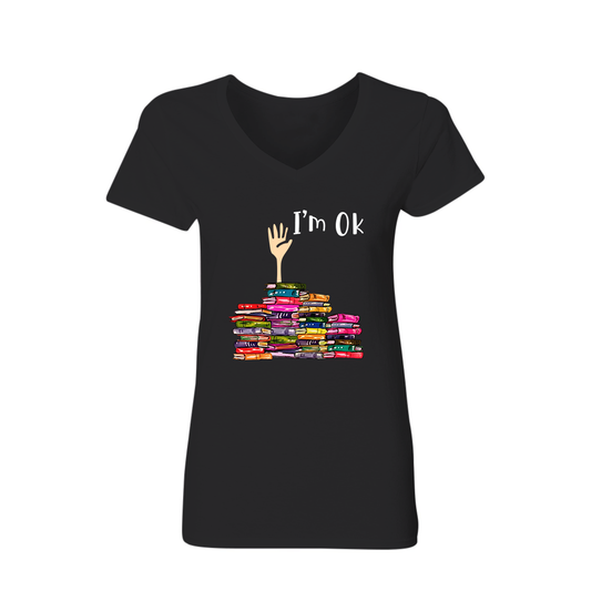 I'm OK It's Fine I'm Fine Everything's Fine Book Lovers Gift Women's V-neck T-shirt TSVB22