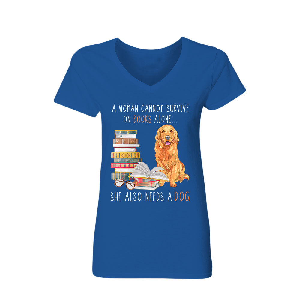 A Woman Cannot Survive On Books Alone She Also Needs A Golden Retriever Dog Book Lover Gift Women's V-neck T-shirt TSVB172