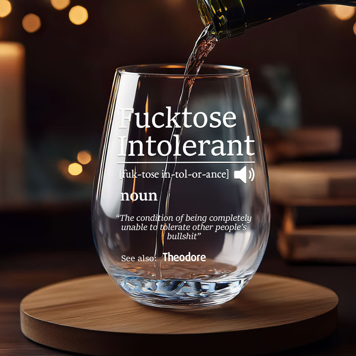 F*cktose Intolerant - Personalized Stemless Wine Glass