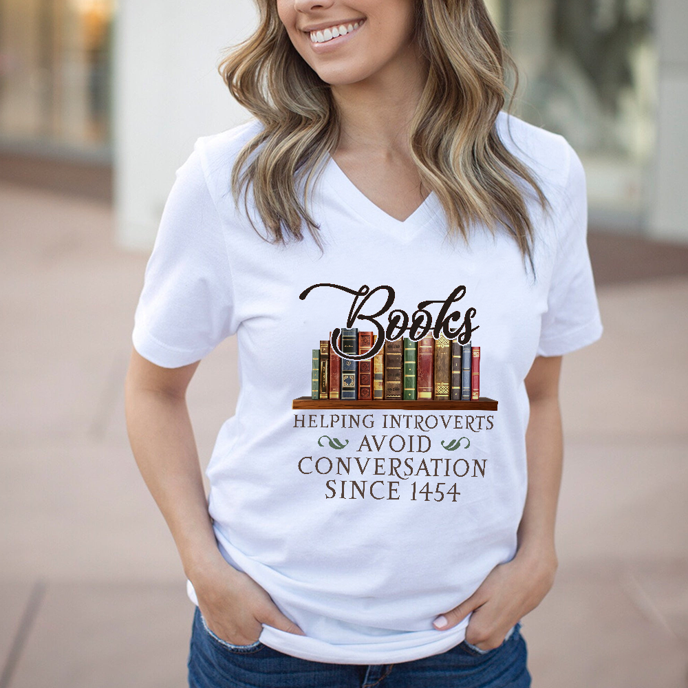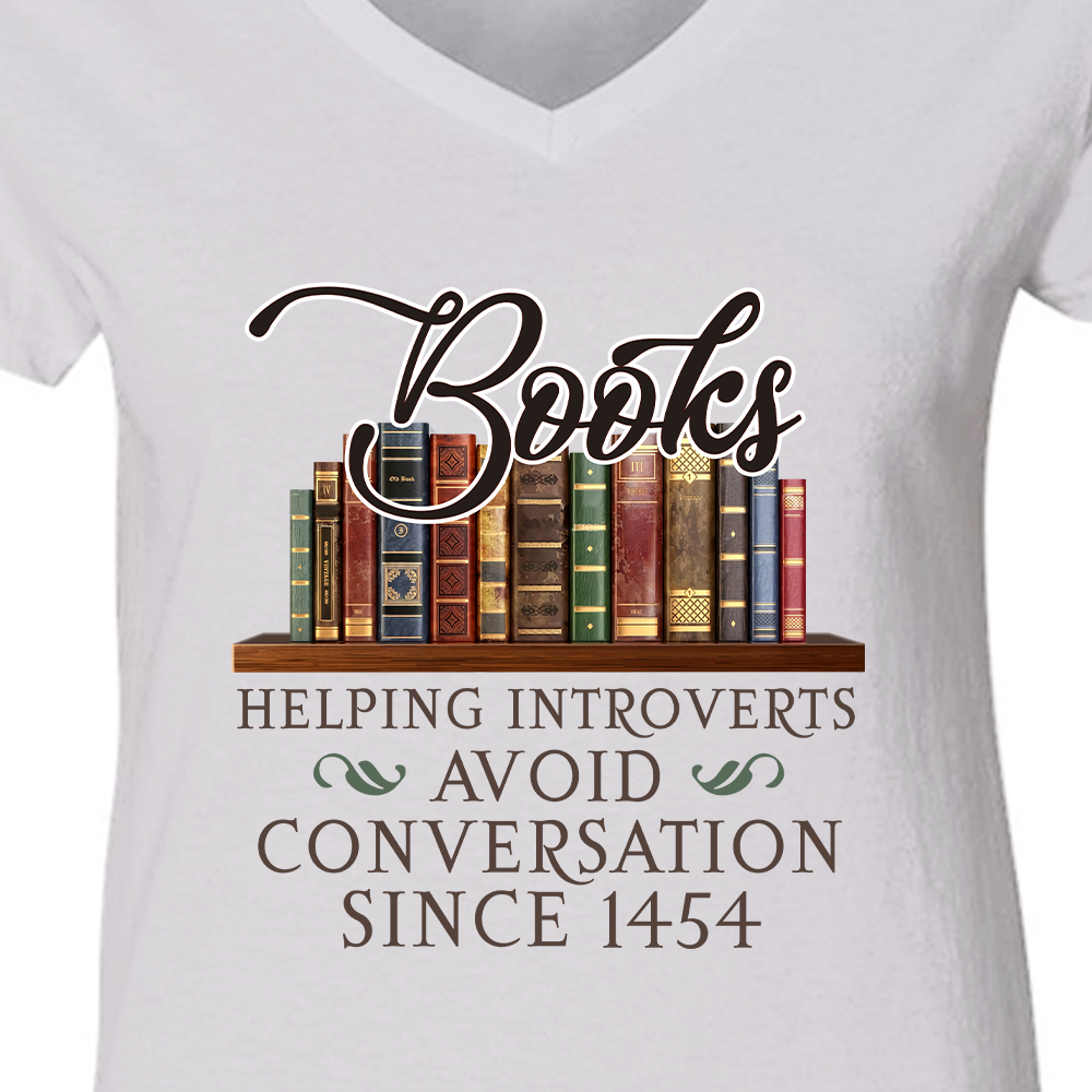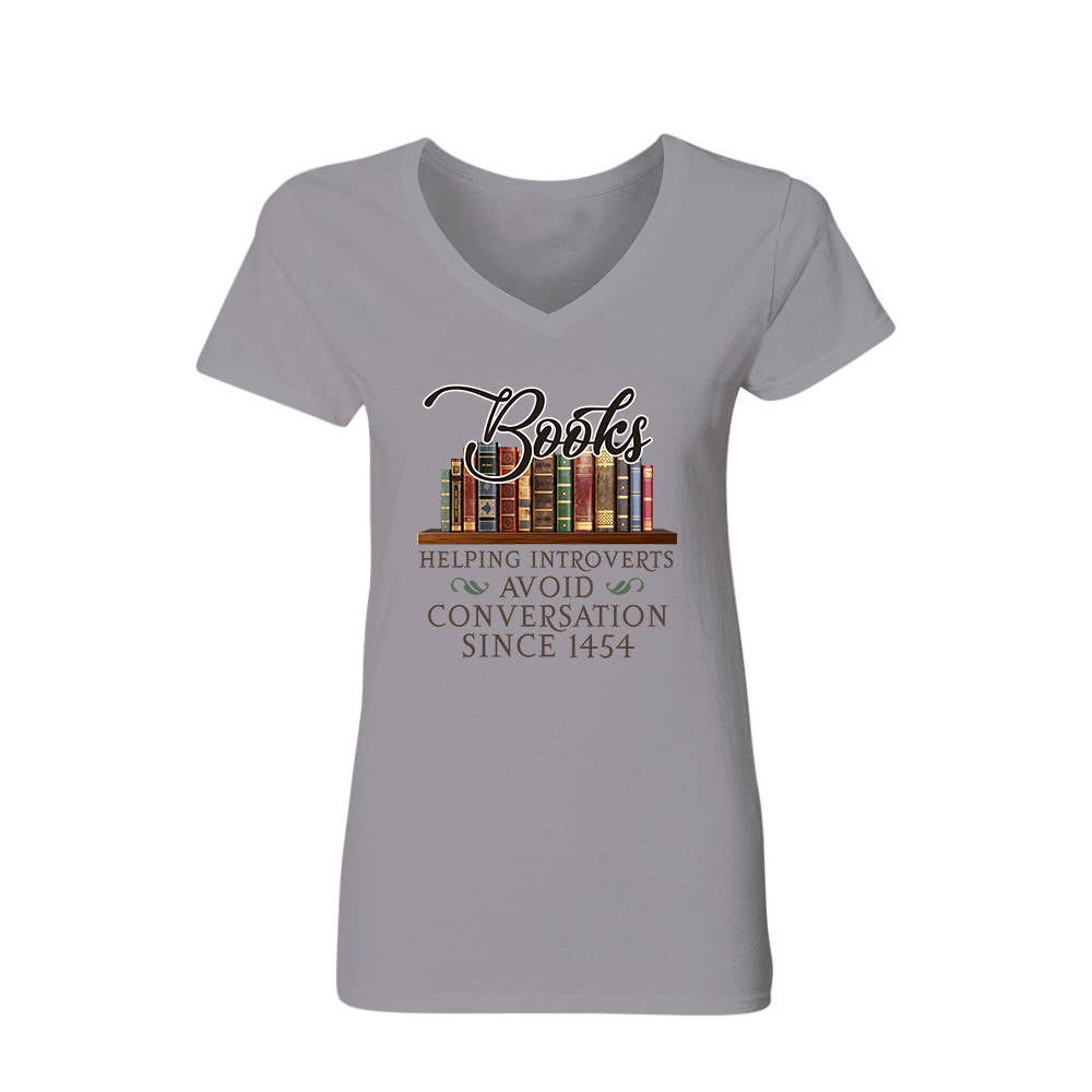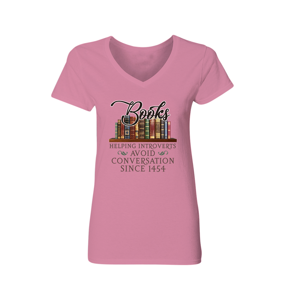 Helping Introverts Avoid Conversation Book Lovers Gift Women's V-neck T-shirt TSVW03