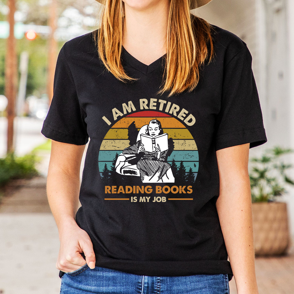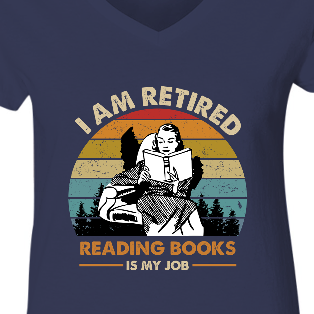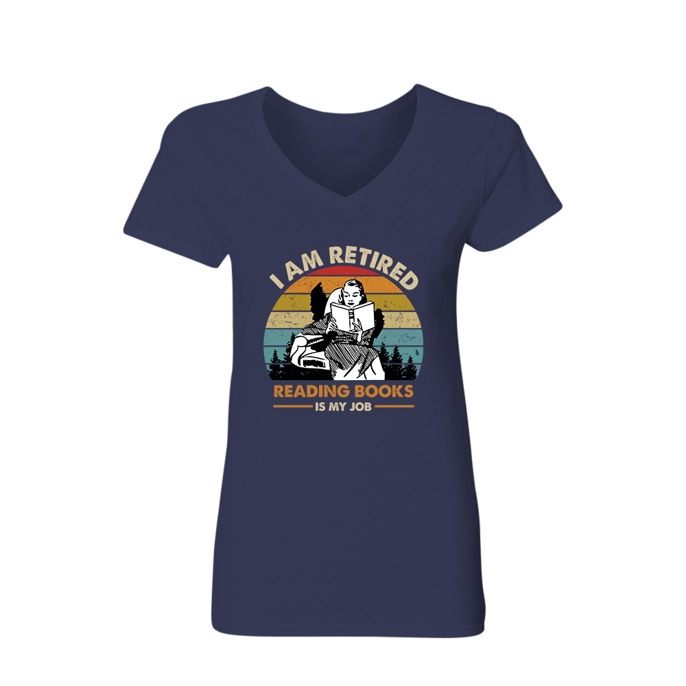 I Am Retired Reading Books Is My Job For Women Book Lovers Gift Women's V-neck T-shirt TSVB02