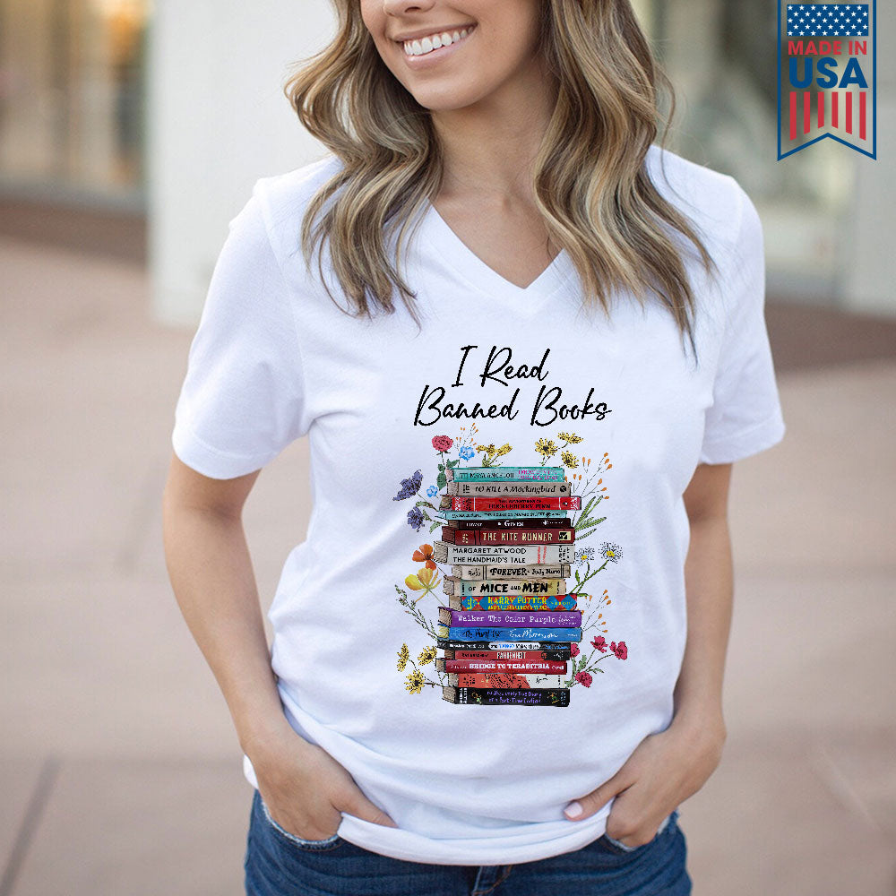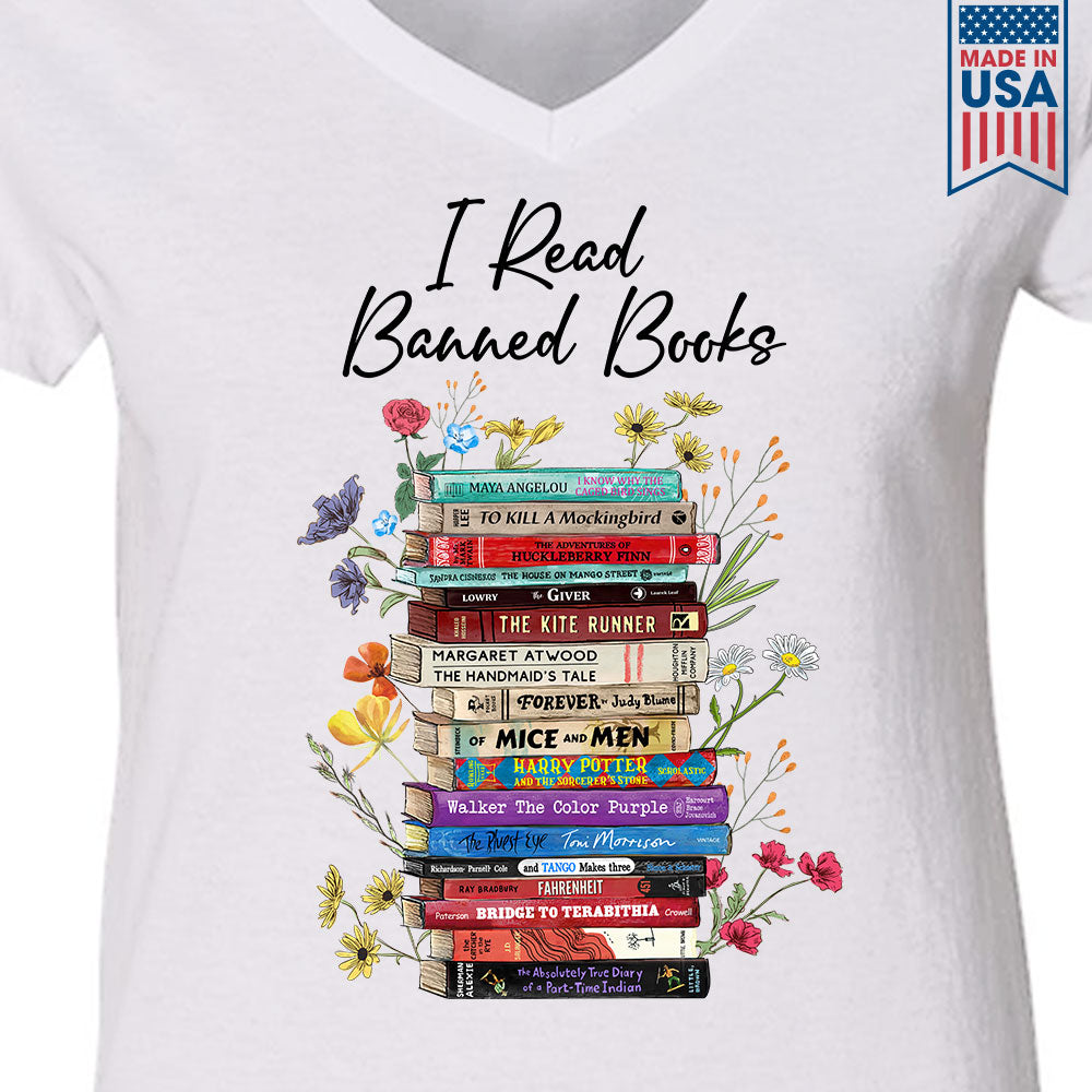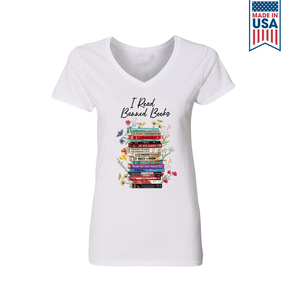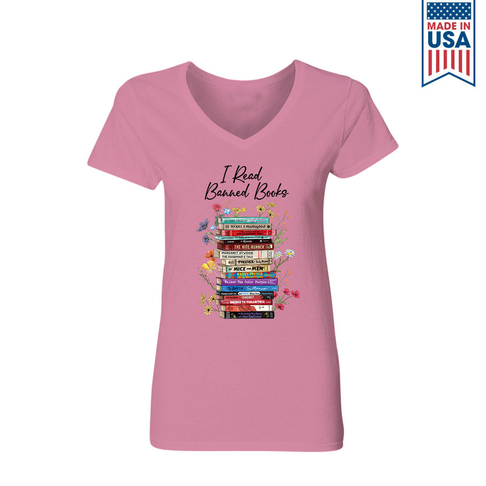 I Read Banned Books Flowers Book Lover Gift Women's V-neck T-shirt TSVW189