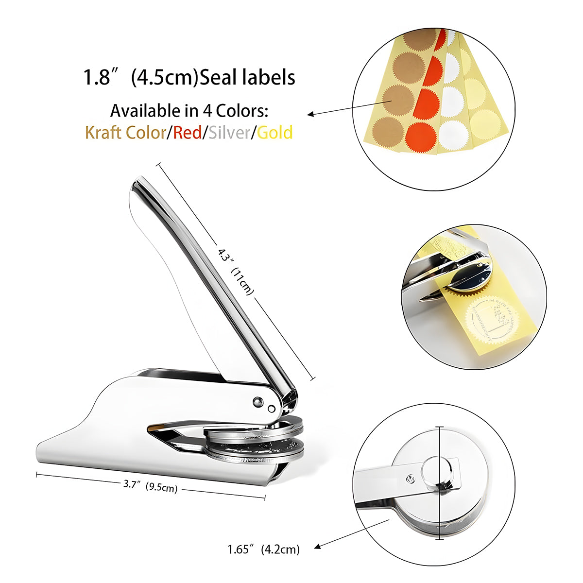 - Crafted from durable brass and stainless steel with a comfortable hand-held design and easy pressing mechanism. The perfect 1.65" diameter seal creates a beautiful impression. Fully customizable with your name or initials.