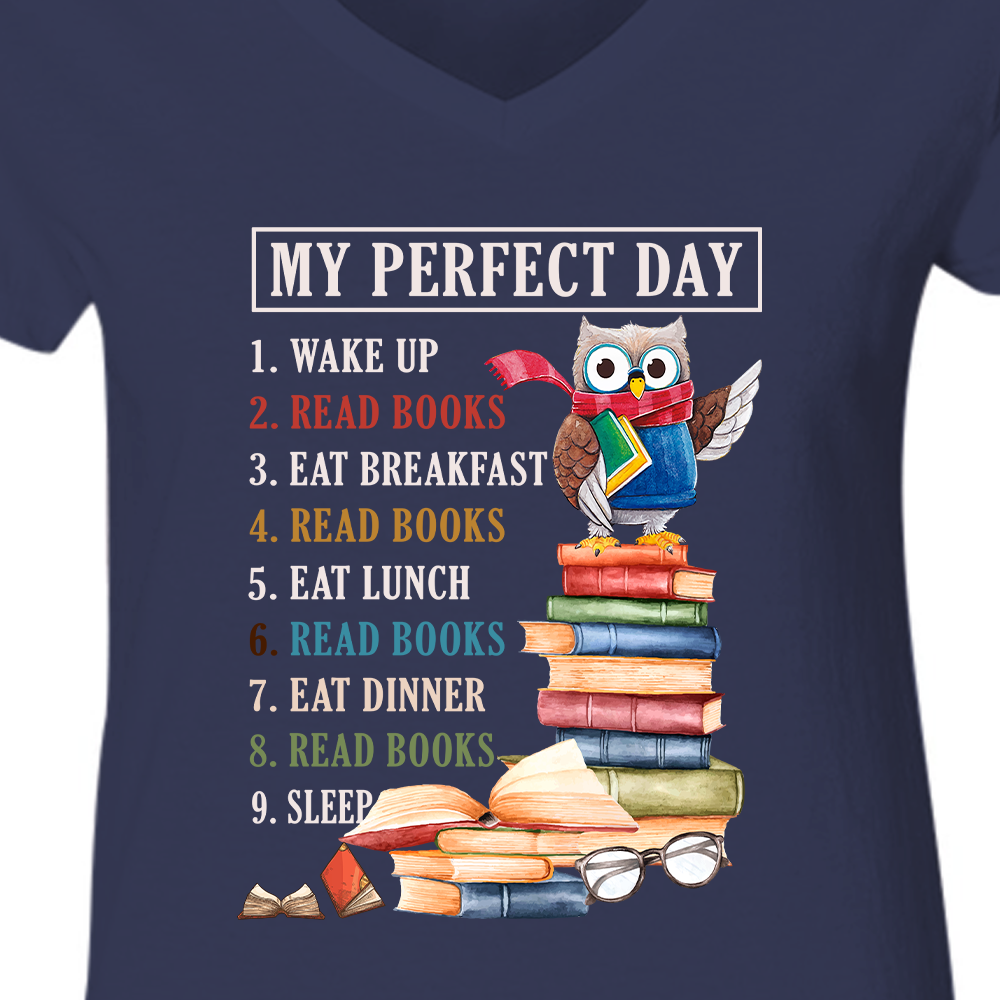 My Perfect Day Book Lovers Gift Women's V-neck T-shirt TSVB06