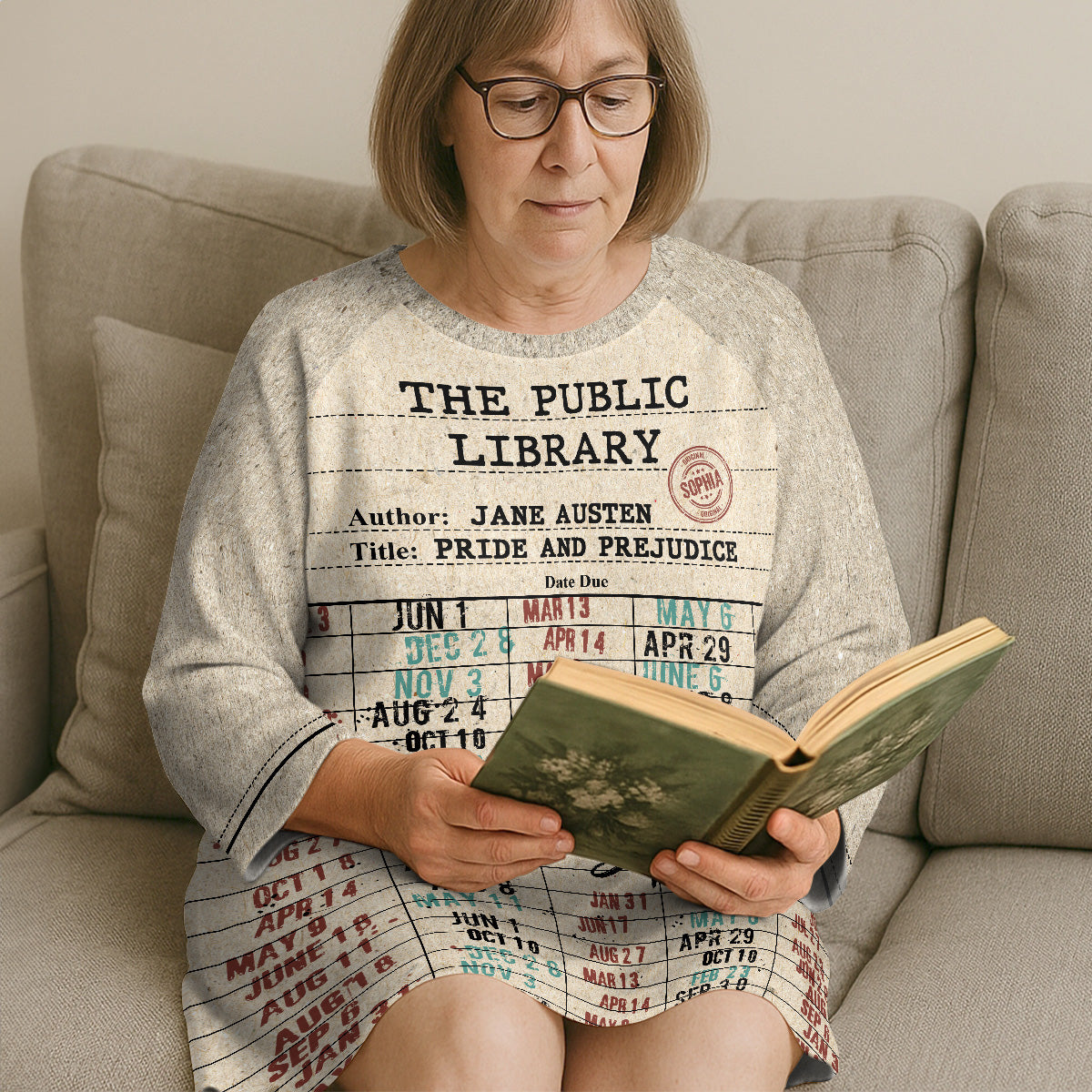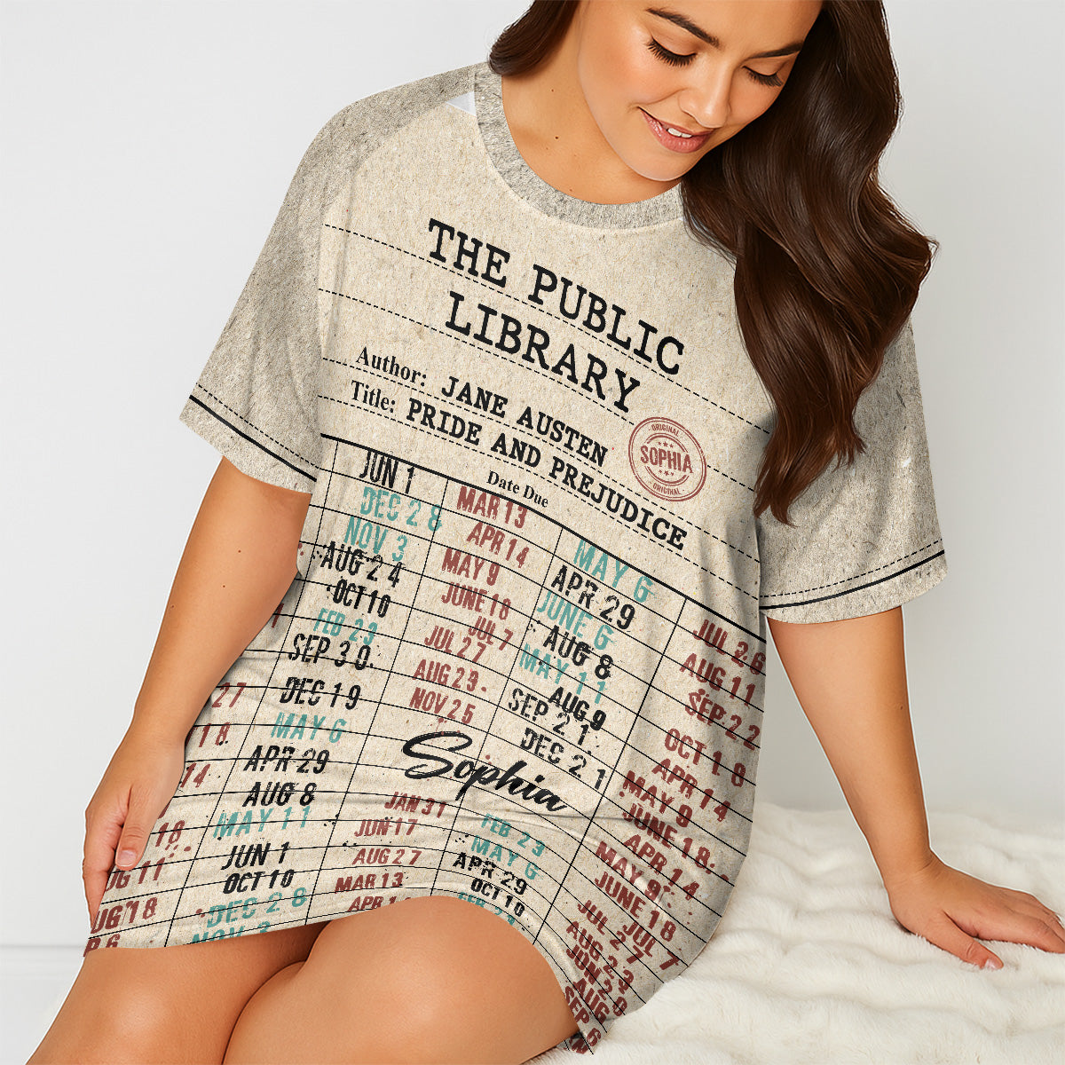 Nostalgic Library Card Due Date Stamp - Personalized Sleep Tee